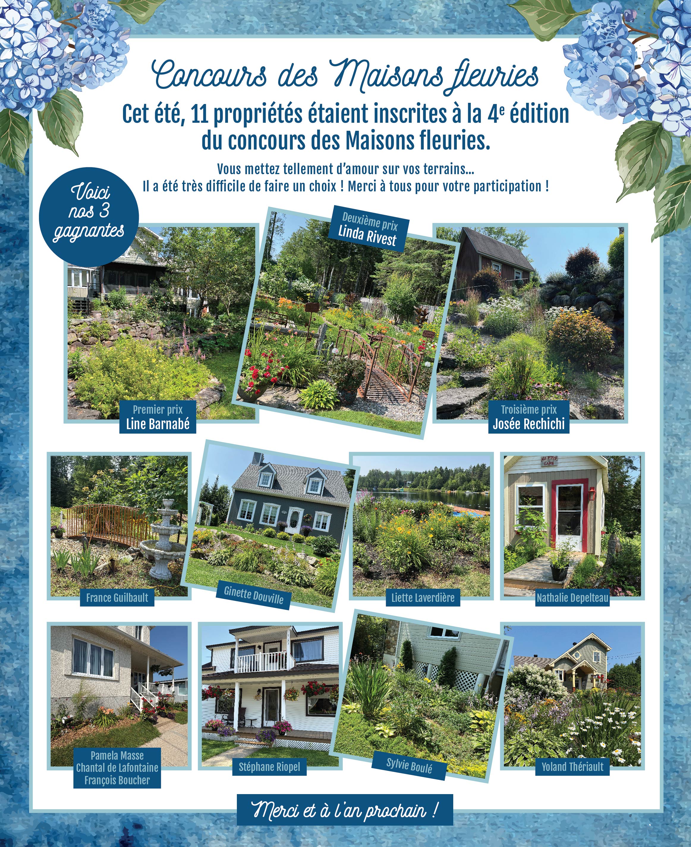 Suite à la visite de ces magnifiques aménagements, voici les trois personnes gagnantes :