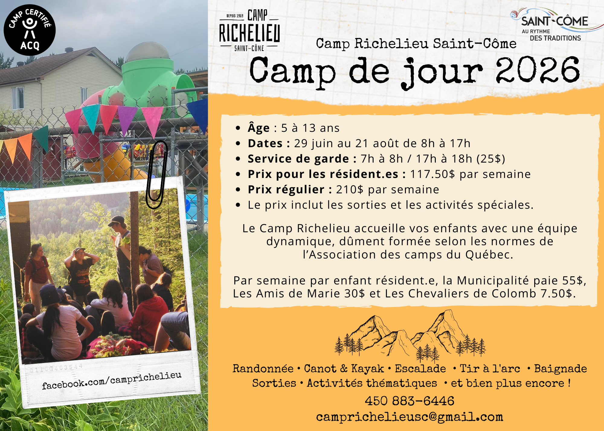 Les rabais pour les résident.es sont possibles grâce à la Municipalité de Saint-Côme, aux Amis de Marie de Saint-Côme inc. et aux Chevaliers de Colomb conseil 9749 St Come Lanaudière.